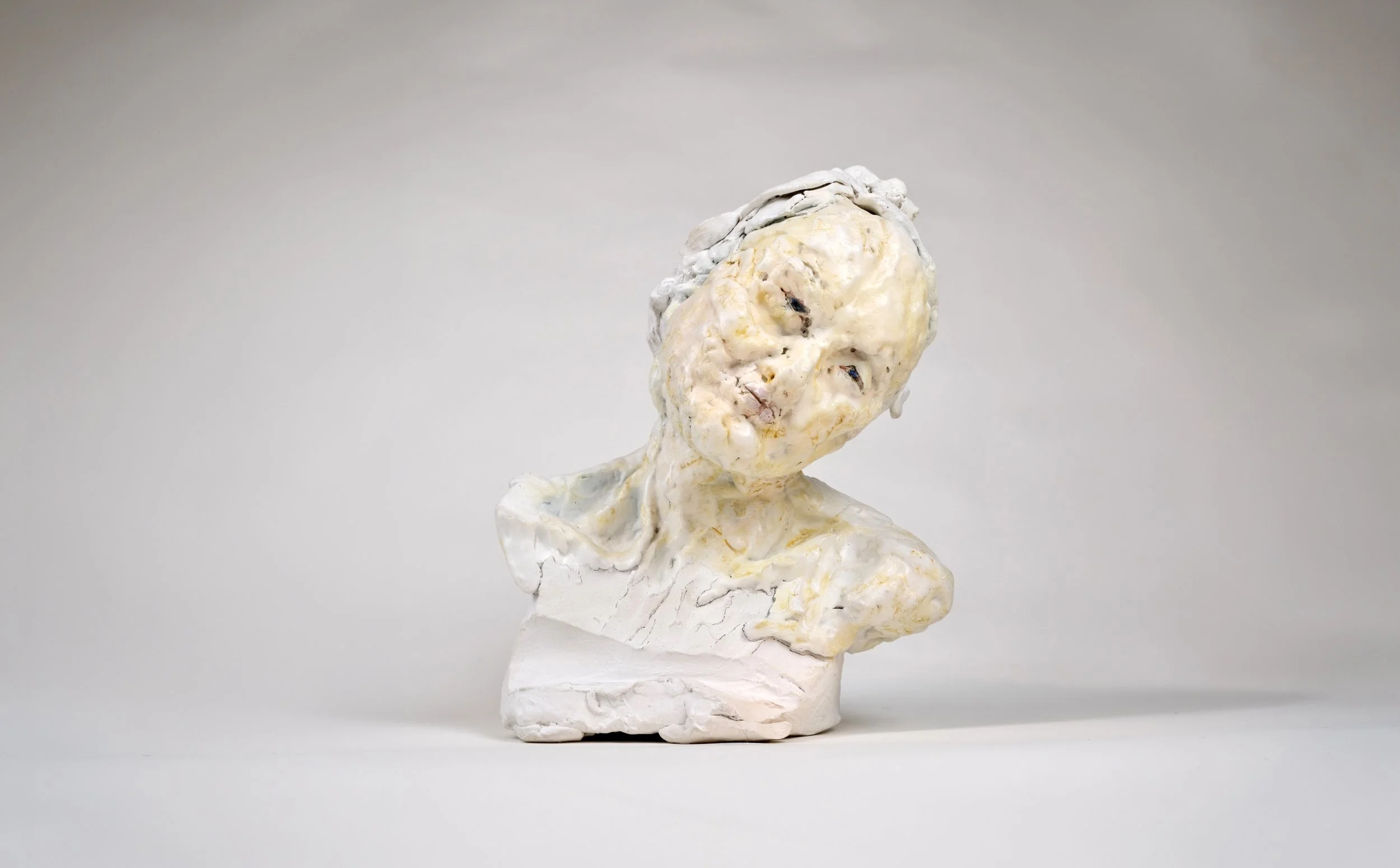 2019, fired white clay, paint & wax, 29×24×19cm